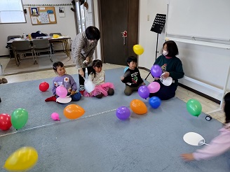 風船バレーと玉入れゲームをしました