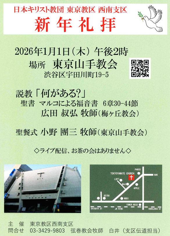 西南支区 新年礼拜 聖餐式のご案内