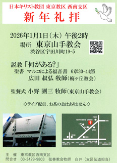 2026年元旦の会場は「東京山手教会」です(詳細は新年礼拝案内をご覧下さい)。